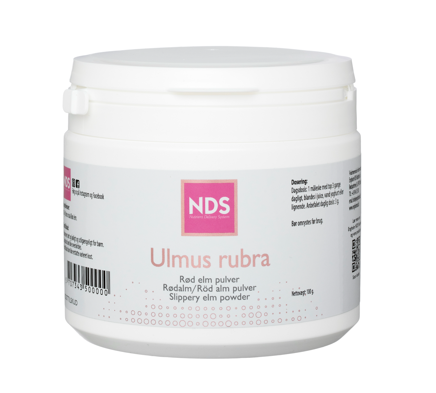 NDS® Ulmus Rubra. 100g Red Elm/Slippery Elm powder. Mix with water, juice, yoghurt or similar. Recommended daily dose: 3 gr. - 1 measuring spoon 3 times a day. The daily dose should not be exceeded.